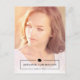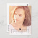 Este simples cartão postal de anúncio de formatura apresenta uma foto completa do novo graduado. A parte inferior do cartão postal inclui o nome do graduado e o ano de formatura em uma moldura e encimado por um boné de formatura. No verso do cartão postal, você pode adicionar uma mensagem pessoal e detalhes da festa de formatura.