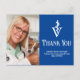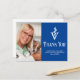 Cartões de agradecimento personalizados de formatura da escola de veterinária azul com o caduceu médico veterinário ao lado da foto do seu graduado. Personalize esses cartões de agradecimento com tipografia branca elegante ao lado da sua fotografia para a sua clínica veterinária.