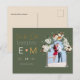 Cartão Postal Foto Casamento Salvar a Data Floral Verde Oliva