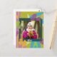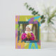 Postcard moderno personalizado, colorido, verde e rosa para batatas fritas, aniversário de menina, convite de aniversário. Personalize o cartão floral verde com foto, texto. Envie para aniversário, convite ou use para fotografia escolar.