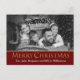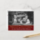 Personalize a frente e o verso deste cartão postal de Natal com fotografia divertida. Sua foto será automaticamente convertida em preto e branco e então adicionada a este postal de Natal na moda com um banner vermelho de Natal embaixo segurando o texto Feliz Natal em ouro cintilante junto com seus nomes. Você pode personalizar a saudação de Natal, seu endereço de retorno e seus nomes no script próximo à parte inferior com espaço para adicionar uma nota pessoal manuscrita.