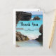 Obrigado postal com uma fotografia cênica com a costa tropical das Bermudas. As rochas grandes contrastam com o mar turquesa brilhante.