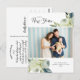 Celebre a estação com este belo cartão postal com a sua foto vertical cercada por um lindo design floral branco de aquarela e as palavras Feliz ano novo em letra de caligrafia de script. Adicione uma nota/carta personalizada digitada à parte traseira ou, se desejar, exclua a nota digitada e escreva manualmente cada cartão postal individualmente. Adicione seu endereço de devolução para facilitar a correspondência. Simples e belo, mas moderno e festivo, um cartão postal perfeito para enviar desejos de férias.