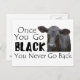 Uma fotografia de uma jovem raça negra angus de vaca, num postal com uma declaração engraçada de orgulho negro que tem um significado completamente novo quando falamos do gado negro angus!