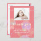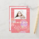 Um obrigado de aniversário moderno que você faz para obrigado seus convidados. Obrigado pelo cartão postal para as crianças. Menina e rapaz, especialmente para 1rua e segundo aniversário. Personalize o cartão com sua foto e seu nome. Insira a foto do seu filho na modelo. Você também pode mudar o obrigado que você escreve e escreve seu próprio texto. O texto está na moda e na cor branca moderna. O fundo é rosa com bolhas suaves e brilhantes.