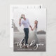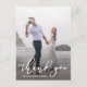 Cartão postal de foto de agradecimento de casamento com caligrafia branca estilosa.