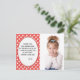 Cartões de agradecimentos de festa de aniversário, linda, menina, com design vermelha e branca. Este cartão é completamente personalizável, por isso adicione a sua fotografia e coloque o texto nos espaços fornecidos. Para obter um controle mais criativo, use o botão "Personalizar" para alterar a fonte, o tamanho da fonte ou a cor.