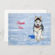 Cartão Postal Foto de Cachorro Husky na Neve Obrigado