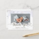 Este cartão de agradecimento para bebê menino com foto moderna apresenta uma caligrafia de agradecimento e estatísticas de nascimento na frente. O verso inclui uma mensagem encantadora de toda a família. Personalize facilmente com seus detalhes e foto do bebê.