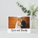 Mostre amor e gratidão aos seus convidados de casamento com este cartão postal de agradecimento de foto de casamento chic e moderno. Uma bela fotografia de recém-casados acima da bela escrita cursiva preta e seus detalhes personalizados neste cartão minimalista da moda.