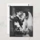 Foto de casamento da tipografia moderna Obrigado Cartão-postal com uma elegante escrita branca na frente e a escrita preta no verso. Adicione facilmente sua foto personalizada e seu texto à frente e atrás do cartão-postal.