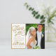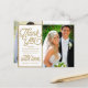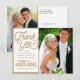 Um cartão postal de agradecimento não tradicional com uma fonte moderna mas retrô. Combina com o Save the Date e Save our Date com a mesma fonte, cores e aparência. Substitua com suas fotos, mensagem e nomes (ou use a mensagem de exemplo fornecida). Fundo branco com acabamento em dourado.