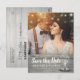 Salve a data Modelos de Cartões de Foto de Convite para Casamento - Roteiro de Lettering Elegante, Óculos de Champanhe Vintage e Luzes de String no Fundo da Madeira Rústica. Um Design Perfeito Para O Seu Grande Dia! Todo Estilo De Texto, Cores, Tamanhos Podem Ser Modificados Para Ajustado Das Suas Necessidades.