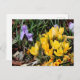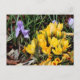 Cartão Postal Foto de Crocus Amarelo com destaque verde