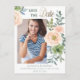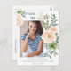 Cartão-postal Elegante de segundo grau de guião moderno ou de anúncio de formandos com flores cor-de-água cor-de-rosa-claro e verde-verde. Personalize com sua foto e texto.