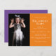 Cartão-postal com Convite de festas Moderno Web do Halloween Spider com modelo de fotografia com fundo roxo e laranja. Truque ou Tratar! Celebre a noite mais assustadora do ano com este convite de festas divertido. Texto pronto para personalizar com os detalhes da sua festa. Foto pronta para sua foto,