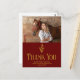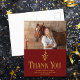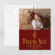 Cartões-postais personalizados de agradecimento de graduação da escola veterinária marrom com o caduceu médico veterinário ao lado da foto do seu graduado. Personalize este cartão-postal de agradecimento com letra dourada elegante ao lado da sua fotografia.