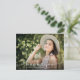 Elegante obrigado de fotos da graduação moderna que você faz o cartão-postal com caligrafia de corações bonitinhos lendo OBRIGADO com sua foto de mais velho favorita. Mensagem pré-impressa personalizada no verso ou deixe o vazio para escrever uma nota escrita à mão.