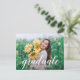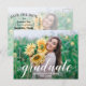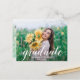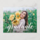 A palavra "formando" em um roteiro branco elegante junto com o nome do formando e o ano de classe SAVE OS cartões postais DATE para sua Festa de formatura ou Cerimônia de Graduação apresentam uma foto em cada lado. Mais designs na nossa loja.