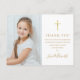 Com nome em letra cursiva dourada. Personalize com a sua foto e mensagem especial de agradecimento da primeira comunhão em letras douradas elegantes neste design sofisticado. Criado por Thisisnotme©