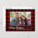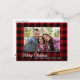 Um belo estilo rústico, xadrez de búfalos vermelhos - cartão postal de feriado tartano com roteiro de caligrafia "Feliz Natal", seu nome familiar, ano ou outro texto e sua foto de família. Personalize sua mensagem na parte traseira do cartão para o toque perfeito.