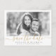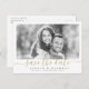 Escrito moderno "salvar a data" em cor dourada, com foto de casal, simples e elegante. Foto de excelente, guarde os cartões postais para casamento moderno e outros eventos. Selecione "Clique para personalizar mais" na seção "Personalizar este modelo" para alterar a cor do script para corresponder à sua foto e ajustar a posição da foto. Ver todas as peças correspondentes na coleção