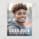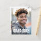 Cartão postal de agradecimento de formatura com sua foto e o texto "grad" e seu ano em uma fonte de esportes universitários com seu nome ou escola abaixo.