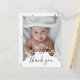 Este cartão postal de cartões de agradecimentos de batismo fotográfico elegante facilita a obrigado do Padre, da família, dos amigos pela sua presença no Batismo do seu bebê. Design da sua foto favorita do bebê e ''obrigado you'' no moderno script de fontes manuscrito. Adicione sua mensagem ou/ e texto adicional no verso.