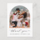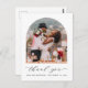 Obrigado de casamento, seu cartão postal com sua foto em um quadro arquitetado moderno, "obrigado você" em um roteiro elegante e seu nome Sr & Sra. e data de casamento em uma simples tipografia. Ao contrário, você pode personalizar um obrigado que você envia e adicionar seus primeiros nomes como uma assinatura, com espaço no topo para endereçar pessoalmente o destinatário, se desejar.
