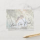 Casamento chic minimalista de fotos tranparente com sangramento de cheio salve a data do modelo de cartão postal apresentando sua imagem personalizada em uma camada branca de vellum com caligrafia escrita à mão preta. ++++++++++ Fácil de personalizar com seus detalhes e imagem em ambos os lados!