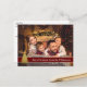 Um design de cartão de Natal com fotos da sua família enchendo o rosto do cartão. Cor da árvore de Natal de ouro metálico com banda de texto vermelho escuro para as suas palavras. Você pode personalizar a saudação de Natal, seu endereço de retorno e seus nomes no script próximo à parte inferior com espaço para adicionar uma nota pessoal manuscrita.