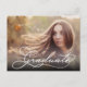 A palavra "Formando" em um roteiro branco sobrepõe sua foto favorita nesses cartões postais SAVE THE DATE para sua cerimônia de festa de formatura ou graduação. Adicionamos uma camada de gradiente de cinza opcional na parte inferior para que o texto branco possa ser lido sobre sua foto. Adicione a mesma foto ou diferente no lado do endereço traseiro - adicionamos uma camada de fotos suave à imagem traseira para facilitar a leitura das informações. Carregue a(s) sua(s) foto(s), personalize com suas informações e envie um email para a lista de convidados para que eles salvem a data para você no calendário. Mais designs de script na nossa loja.