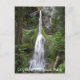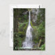 Cartaz viagem com uma vista fotográfica cêntrica da adorável Marymere Falls ao longo de uma trilha florestal no Parque Nacional da Olimpiadas, Estado de Washington. Selecione entre um cartão de estilo mate ou brilhante.