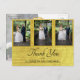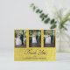 Anéis Dourados Elegantes Obrigado, Cartaz. A tipografia está em uma fonte moderna. Todo o texto é facilmente alterado para adicionar suas próprias informações. Adicione suas próprias fotos. O reverso apresenta uma foto que está desbotada para que sua própria mensagem personalizada possa ser adicionada. Sua foto também aparecerá esmaecida. Este cartões de agradecimentos personalizado está sozinho, mas faz parte de um papel de carta de casamento dos Designs Finos de Chessie.