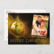 Um moderno design de cartas de Natal cristão com sua foto familiar e nomes acima de um brilhante ouro brilhante Feliz Natal ao lado de um Enfeites de natal de ouro com um reflexo da cruz do Cristo. Você pode personalizar a saudação de Natal, seu endereço de retorno e seus nomes no script próximo à parte inferior com espaço para adicionar uma nota pessoal manuscrita.