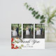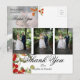 Foto de laranja floral, casamento elegante vermelho Obrigado postal. A tipografia está em uma fonte moderna. Todo o texto é facilmente alterado para adicionar suas próprias informações. Adicione suas próprias fotos. O reverso apresenta uma foto que está desbotada para que sua própria mensagem personalizada possa ser adicionada. Sua foto também aparecerá esmaecida. Este cartões de agradecimentos personalizado está sozinho, mas faz parte de um papel de carta de casamento dos Designs Finos de Chessie.