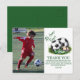 Envie um agradecimento esportivo ou mensagem com este cartão postal temático de futebol verde e marinho! Com um vibrante bola de futebol em aquarela e design arrojado, é perfeito para os fãs de futebol de todas as idades. Seja para agradecimentos de festa ou apenas um bilhete divertido, este cartão postal personalizado traz um toque pessoal para cada mensagem. Ideal para meninos e meninas que amam o jogo!
