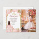 Elegante Quic Blush Foto Floral Rosa Cor-de-Rosa Quinceañera Cartões de agradecimentos