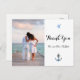 Belo casamento azul de praia no azure moderno Obrigado poste cartas que você pode personalizar, para criar uma impressão duradoura sobre amigos e família pelo seu dia memorável. Substitua a foto da amostra pela sua. O texto pode ser alterado usando o menu de edição. Ideal para qualquer jogo de casamento do tema do casamento na praia moderna!