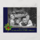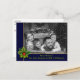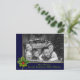 Personalize a frente e o verso deste cartão postal de Natal com fotografia divertida. Sua foto da família enchendo o rosto da placa atrás de um quadro azul e dourado realçado com um pinho e tosse sagrada. A banda inferior contém seus nomes e saudações de Natal em uma fonte verde suave. Você pode personalizar o cartões de natal traseiro, seu endereço de retorno e seus nomes no script próximo à parte inferior com espaço para adicionar uma nota pessoal manuscrita.