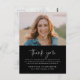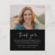 Um simples cartão de agradecimento de foto memorial de funeral com escrita à mão e tipografia minimalista. Clique no botão de editar para personalizar facilmente este modelo de agradecimento com seus próprios detalhes e fotografia de seu ente querido.