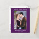 Cartão-postal de Anúncio de Noivado de Fotografia Moderno Minimalista Simples Salve A Data - Roxo