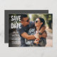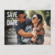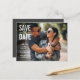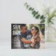 Esta fotografia tipográfica moderna salva a data do cartão postal apresenta a sua foto especial, sobreposta com os seus nomes, data e local em texto branco. Você pode personalizar a parte de trás com sua cor favorita, adicionar detalhes adicionais ou deixar o vazio. Projetado por Thisnotme©