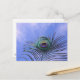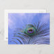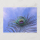Fotografia de uma pena de pavão contra um céu de nuvens sábias.