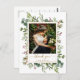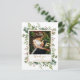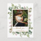 Este cartão postal de agradecimento apresenta eucalipto pintado à aguarela, folhas verdes, bagas vermelhas, ramos de pinheiro e uma moldura retangular dourada falsa. Para personalização mais avançada deste design, clique no link "Personalizar ainda mais". Itens correspondentes também estão disponíveis.