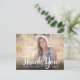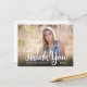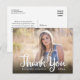 Este cartão postal de agradecimento de graduação apresenta uma foto horizontal que preenche a frente do cartão. O que a caligrafia manuscrita diz: Obrigado. O texto personalizado permite adicionar: o nome do graduado, ano de graduação e uma mensagem pessoal de agradecimento.