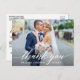 Cartão de agradecimento de fotografia de casamento moderno da noiva e do noivo - Script Branco