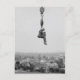 Esta é uma fotografia antiga de um fotógrafo suspenso de um gancho enquanto pendurado de uma grua, uma aventura ousada para obter uma fotografia aérea e ir dar uma volta emocionante.