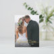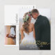 Modelo de cartão postal de agradecimento de casamento elegante e simples com texto de tipografia escrita à mão com um coração entre as palavras em impressão dourada falsa. Adicione sua foto favorita em bleed total na frente e outra foto no verso com mensagem padrão no verso que é editável.
