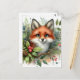 Cartão Postal Fox Vermelha de Aquarela Adorável